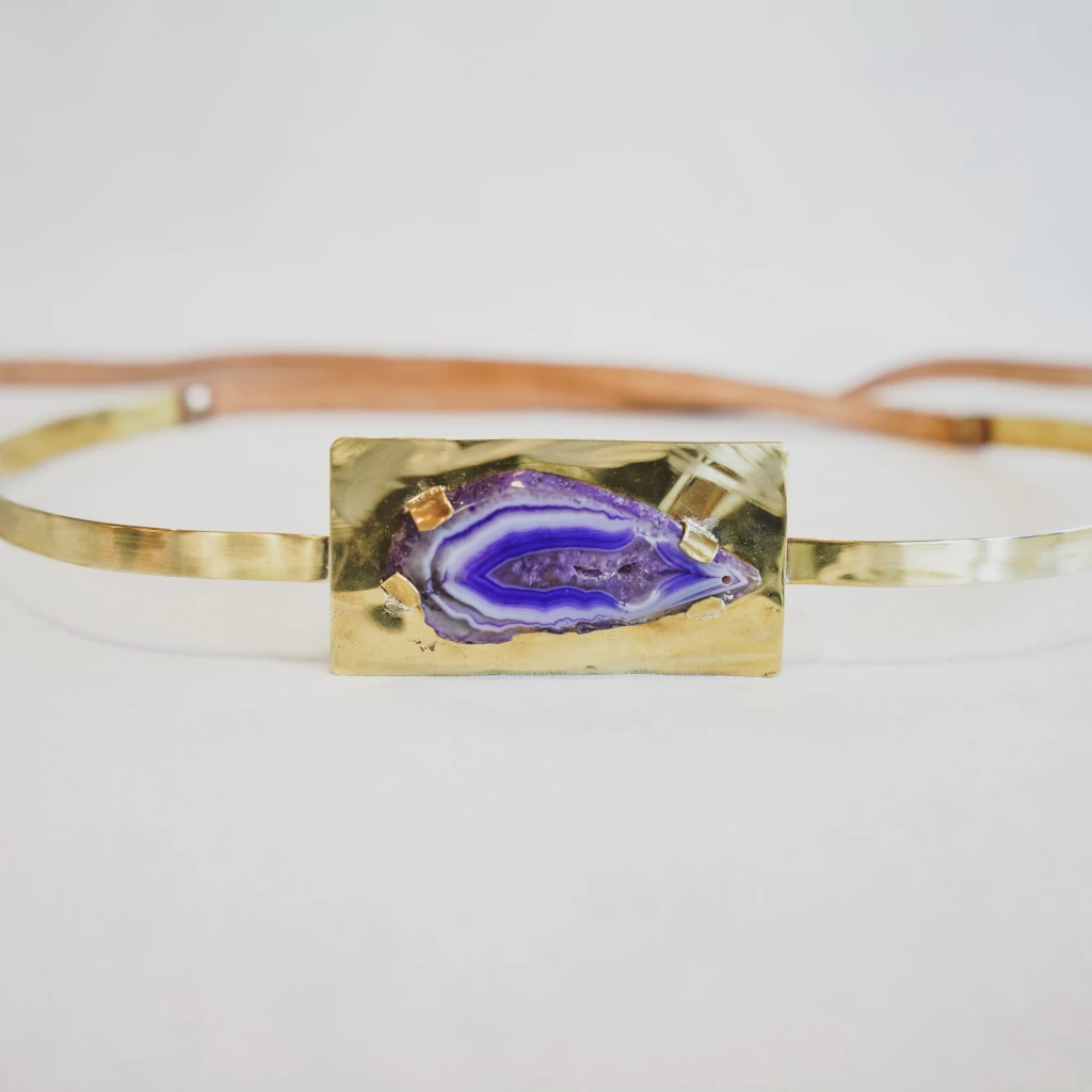 Cinturón de bronce o alpaca con cuero y piedra Agatha o Piedra Asta. Todas las piedras son unicas y distintas.