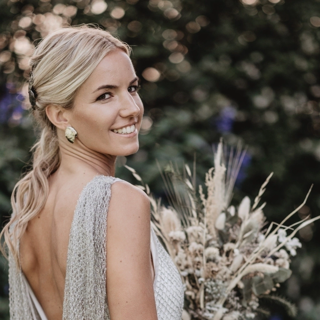 Tocado hecho en hojas de alpaca y aros en conjunto. Pulsera Ágatha.