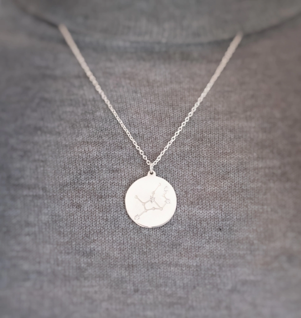 Collar y medalla con grabado de constelación del signo zodiacal y engarce de cubics.