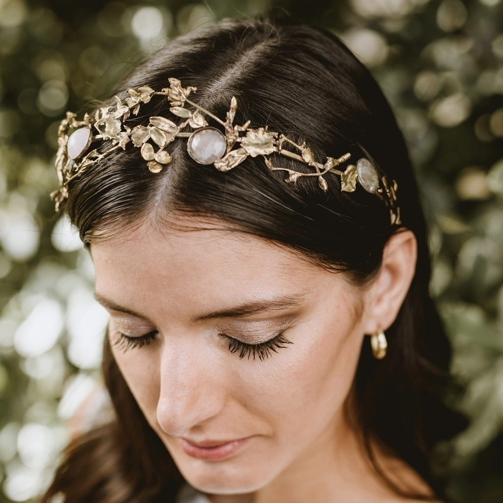 Vincha elaborada artesanalmente con selección de orgánicos autoctonos del sur argentino y engarce de piedras onix.