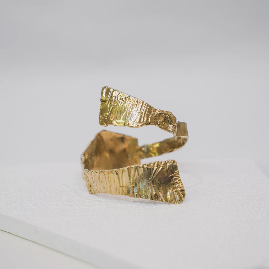 Pulsera tipo brazalete con distintas texturas y bordes irregulares, regulable.