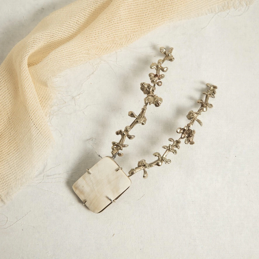 Tocado trabajado a mano con organicos fundidos en alpaca y 1 piedra Asta engarzadas.