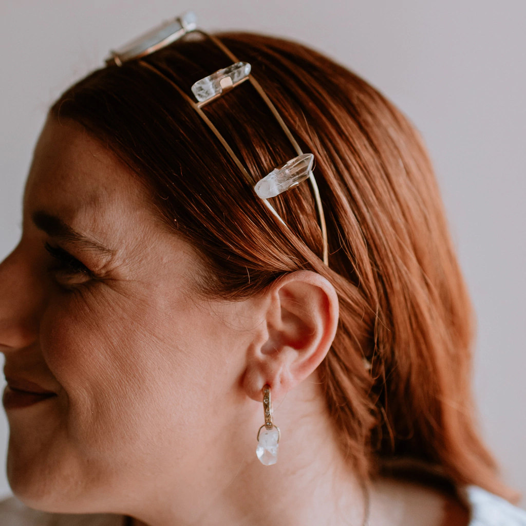 Vincha Alexis, Pulsera a medida con cuarzos y aros cotidiano engarzados